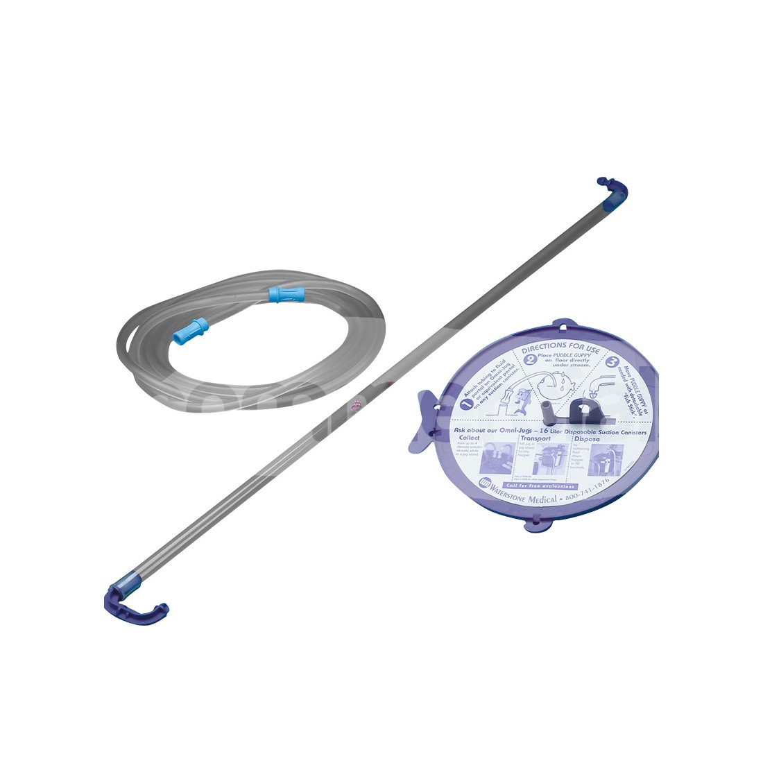 Il sistema si compone di un disco piatto in plastica dotato di micro spessori sulla superficie che permettono di mantenere un elevato flusso di aspirazione dei liquidi evitando che il disco aderisca al terreno per effetto del vuoto. Il sistema si completa di un tubo di collegamento flessibile da 1,8 metri con attacco universale e di un manico collegabile da 90 cm.