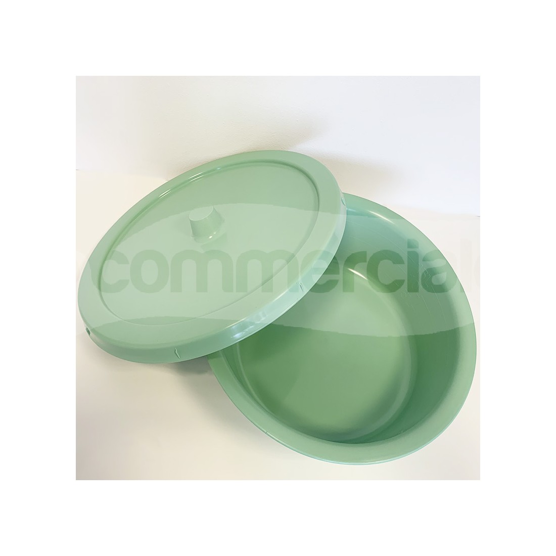 Contenitore pluriuso, dotato di base e coperchio, avente diametro di 53 cm, studiato per la decontaminazione ed il trasporto di strumenti endoscopici flessibili, sonde, etc. Il contenitore è dotato di base graduata all'interno e di coperchio di chiusura con disegno anti schizzo. Il coperchio è inoltre dotato di comoda maniglia per una presa sicura.