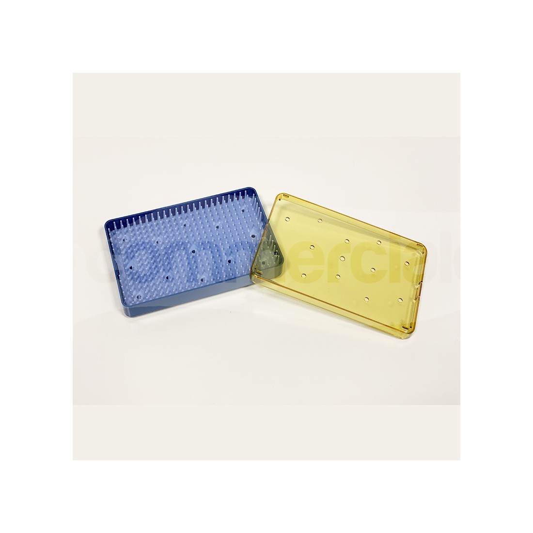 - I vassoi sono dotati di chiusura di sicurezza a scatto posto sui lati corti e di bordi perforati per il corretto passaggio dell’agente sterilizzante.