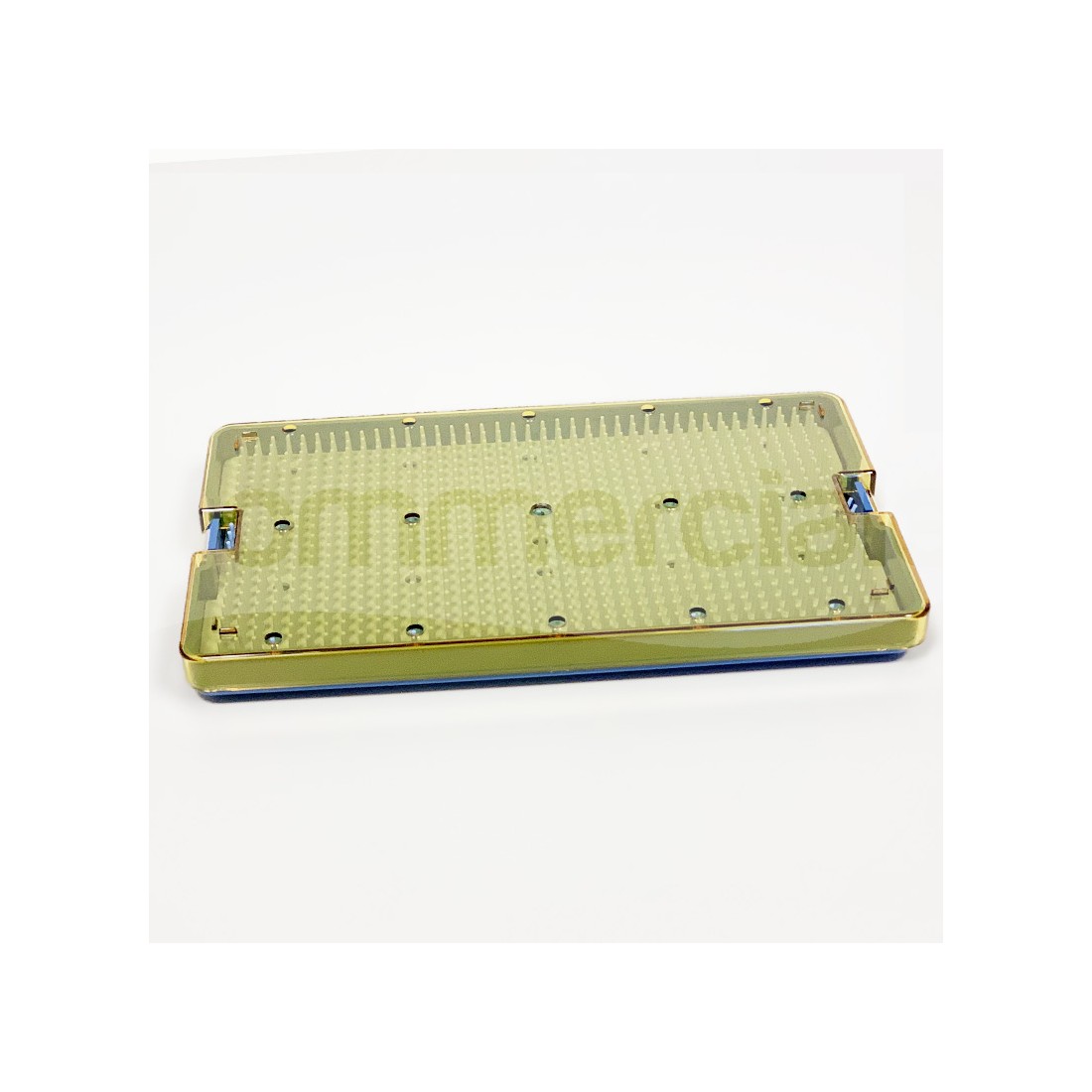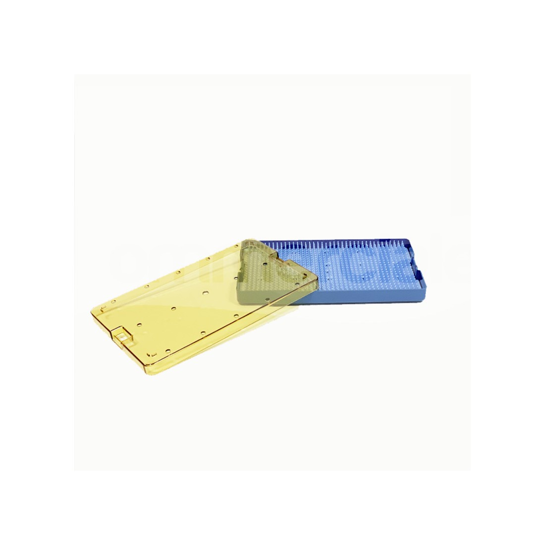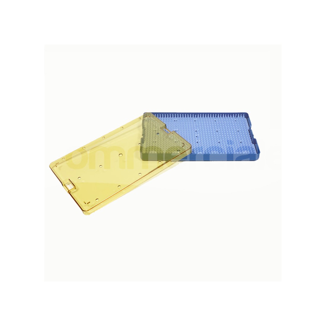 - I vassoi sono dotati di chiusura di sicurezza a scatto posto sui lati corti e di bordi perforati per il corretto passaggio dell’agente sterilizzante.