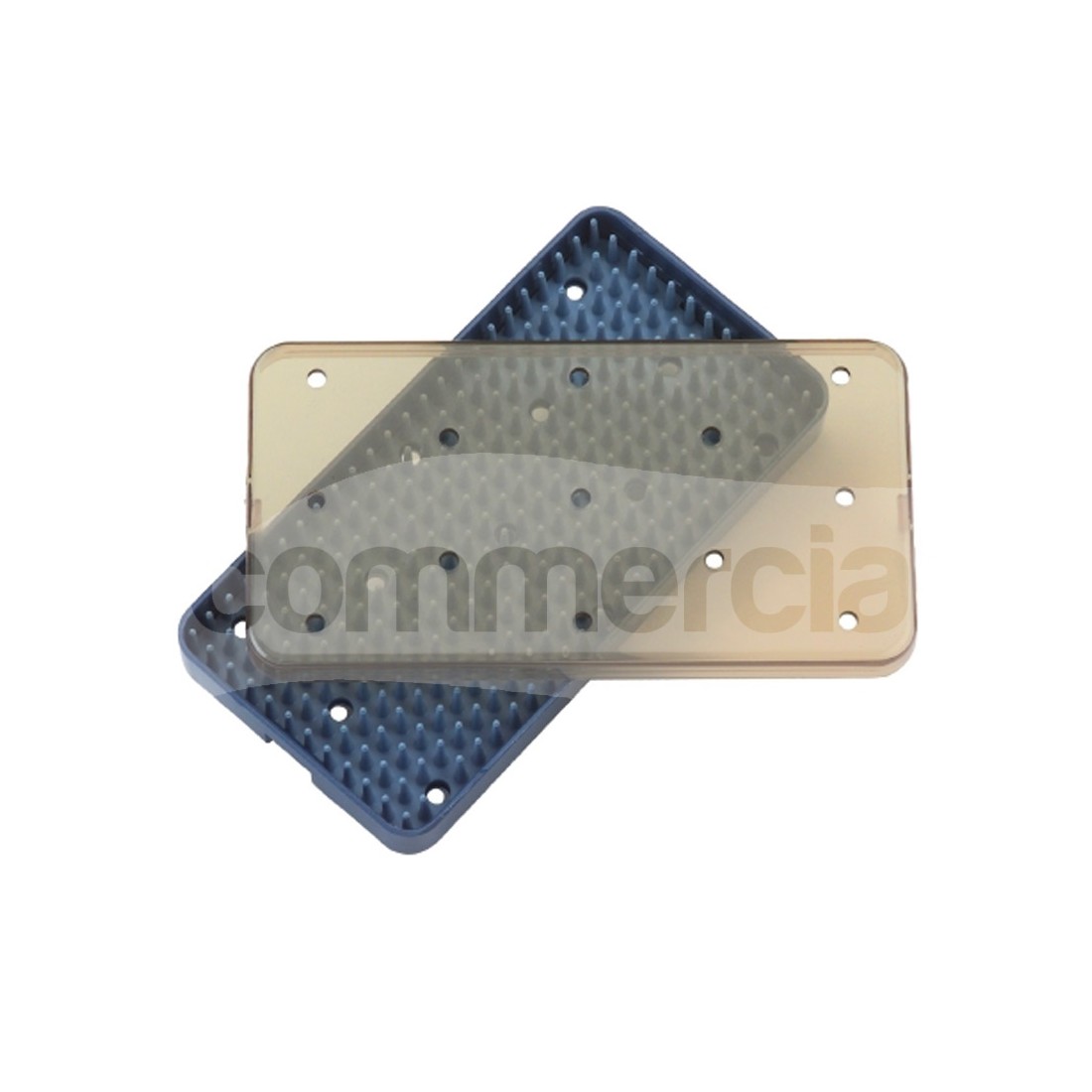 Vassoio in plastica sterilizzabile in autoclave a due comparti interni, completo di tappetino in silicone.
