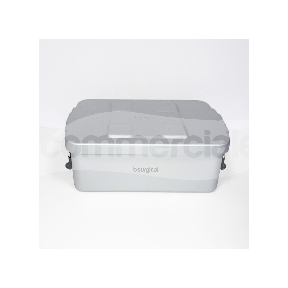 Contenitore pluriuso per sterilizzazione a vapore 3/4 di unità, dotato di base, coperchio con filtro e coperchio di sicurezza antipolvere. Il container è dotato di maniglie di trasporto basculanti realizzate in acciaio inox e rivestite di silicone anti scottatura. Il coperchio del container è provvisto di 2 chiusure di sicurezza realizzate in lega di colore nero e di slot porta targhette posti nella parte frontale del dispositivo.