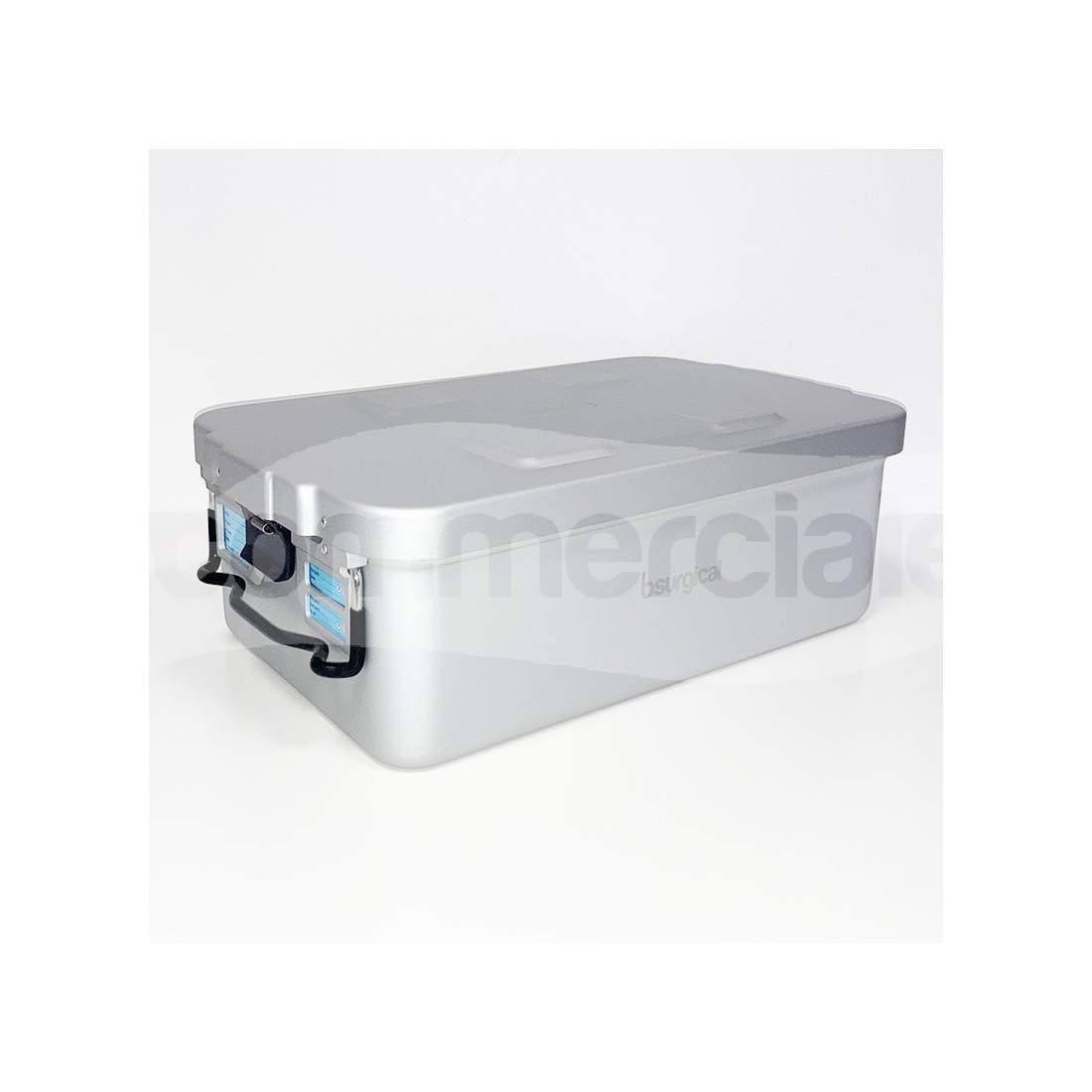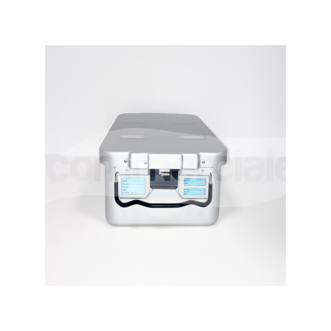 Container in alluminio anodizzato 3/4 unità per sterilizzazione a vapore, dotato di base, coperchio e coperchio di sicurezza, misura 465x280x150mm.