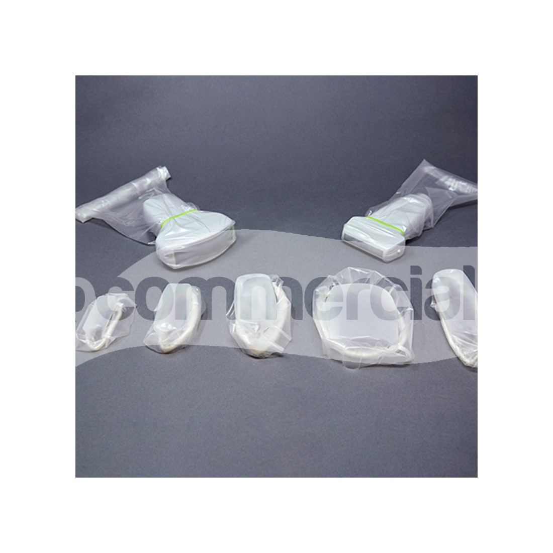 Coprisonda ecografico latex free, realizzato in poliuretano acusticamente trasparente, appositamente studiato e realizzato per un utilizzo con sonde convex piccole, lineari, settoriali e wireless. Il coprisonda è imbustato singolarmente con un elastico di fissaggio ed è semi arrotolato su un foglio di carta di grado medicale per una vestizione della sonda in sicurezza.