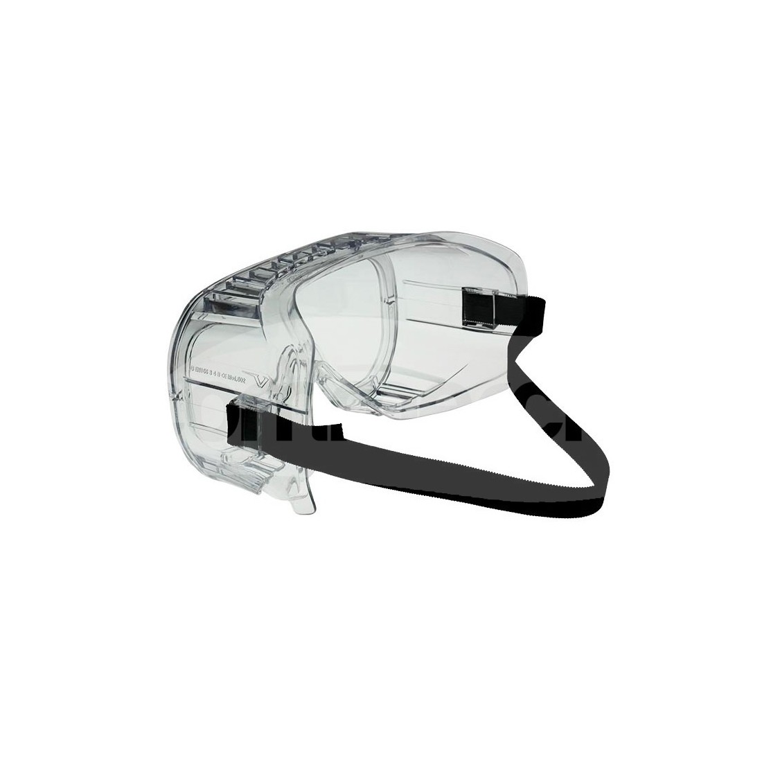 Occhiale a mascherina con fascia elastica, lente neutra antiappannante.
