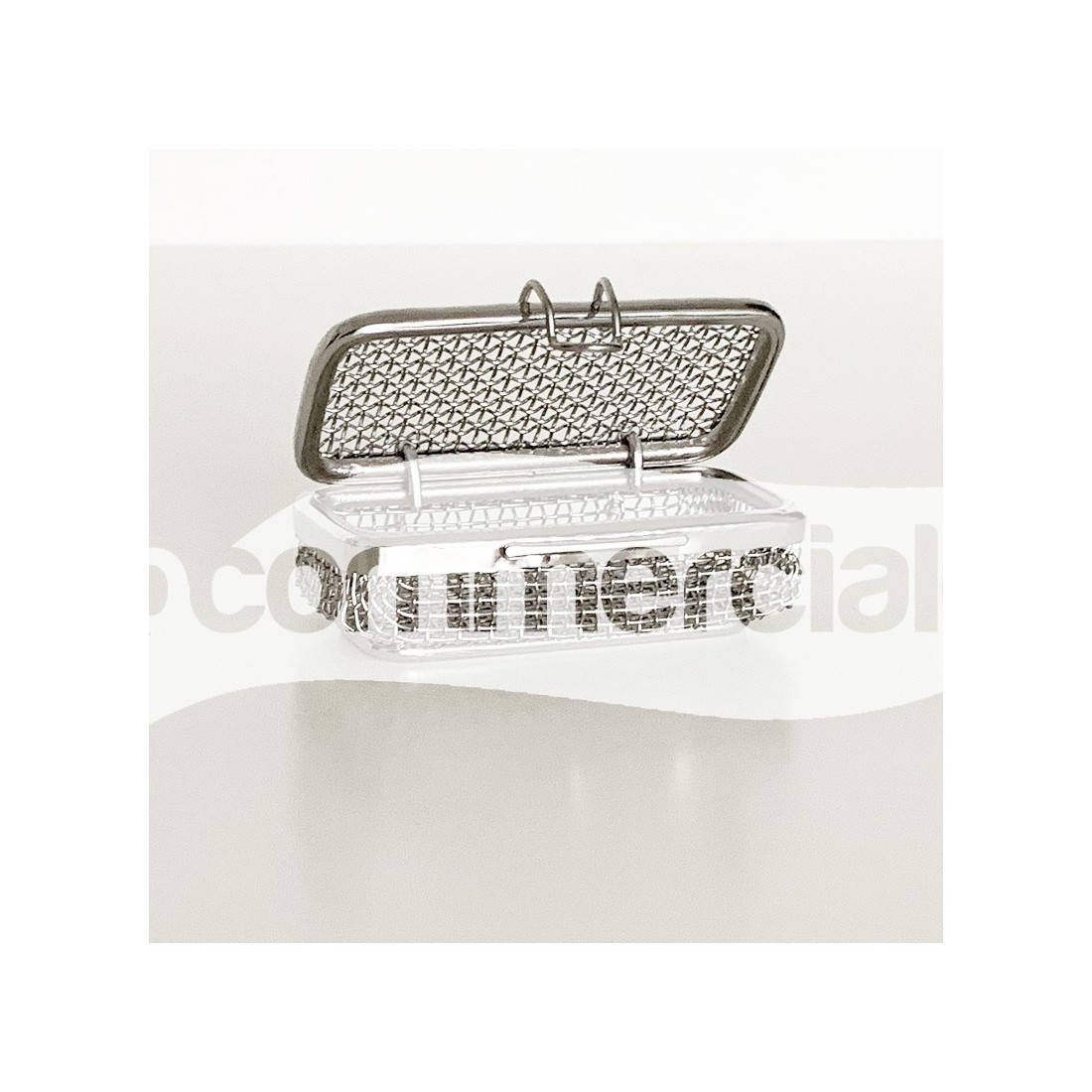 Contenitore realizzato in filo di acciaio inox con trama standard, con bordo ribattuto, ideale per il lavaggio, l'organizzazione e la sterilizzazione di strumentario chirurgico di piccole e medie dimensioni come frese, valvole, connettori, etc.