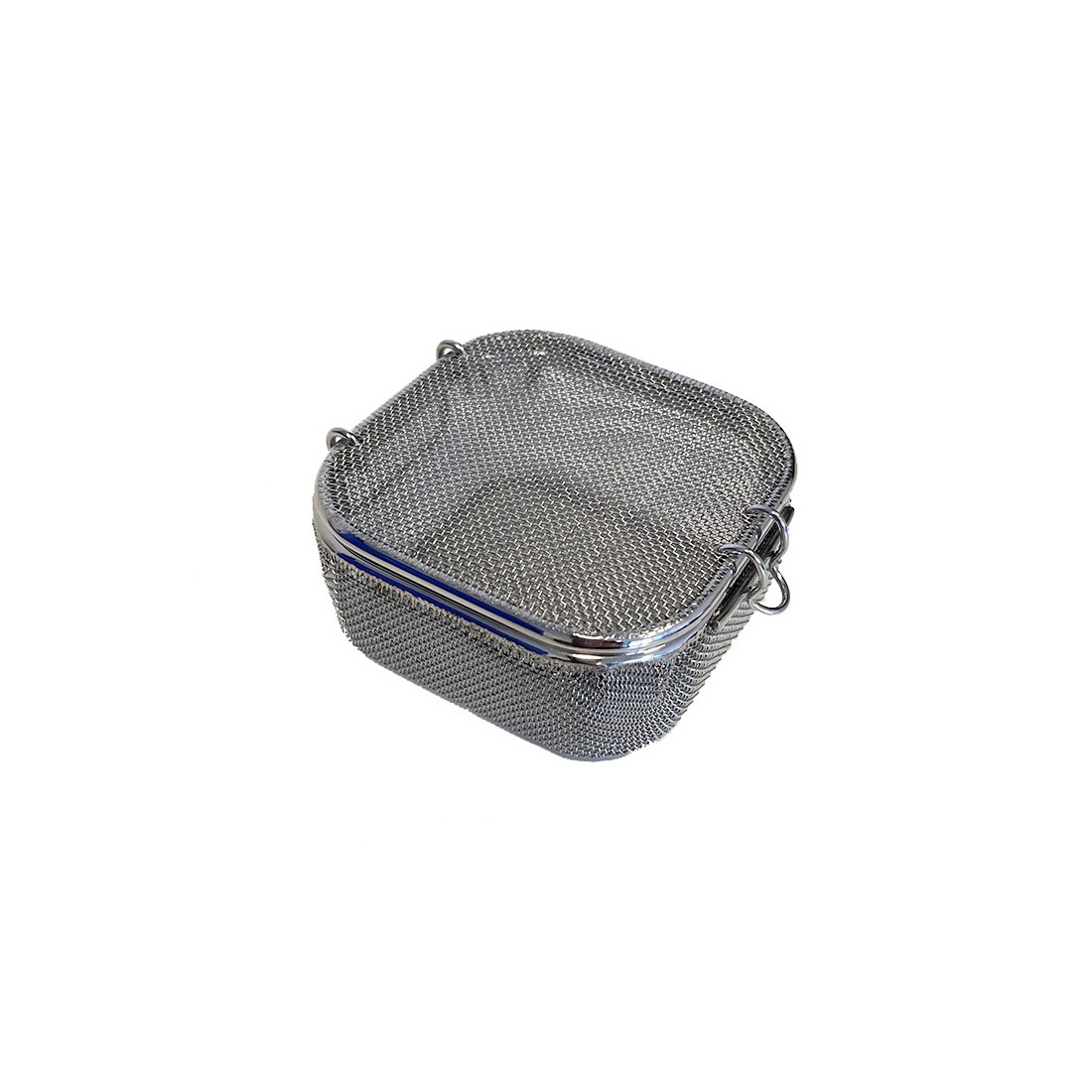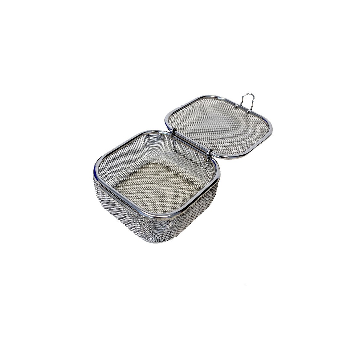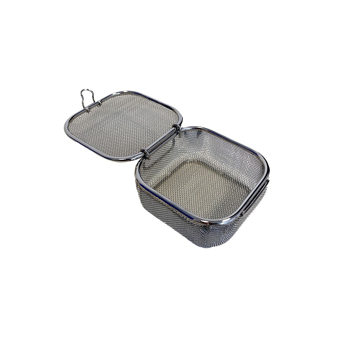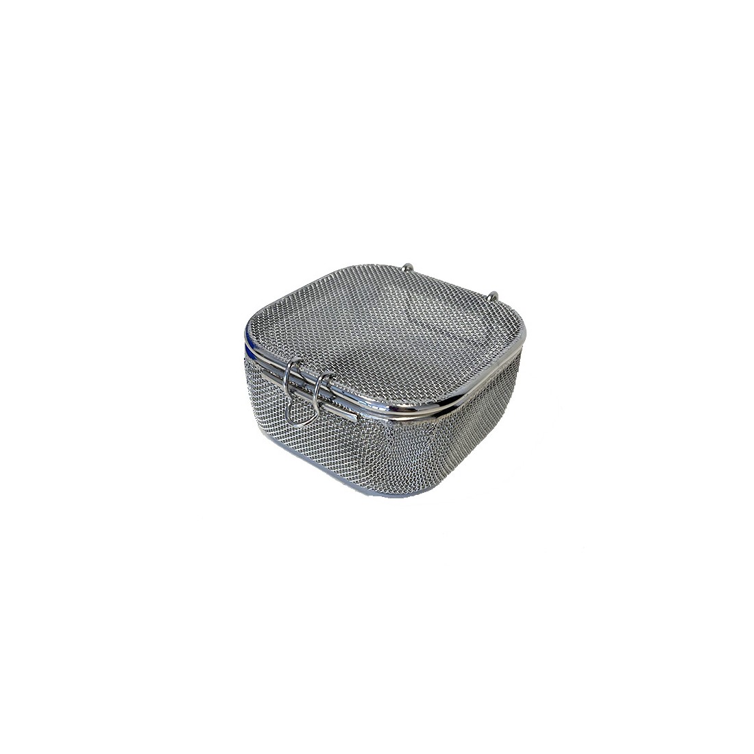 Contenitore realizzato in filo di acciaio inox super fine, con bordo ribattuto, ideale per il lavaggio, l'organizzazione e la sterilizzazione di strumentario chirurgico di piccole e medie dimensioni come frese, valvole, connettori, etc.