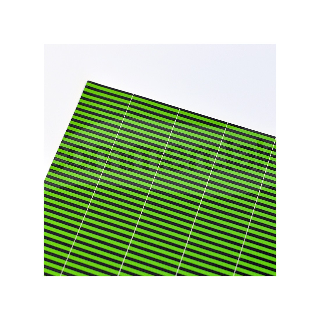 Nastri adesivi pretagliati realizzati in materiale latex free appositamente studiati per la corretta identificazione dello strumentario chirurgico. Strisce nere/verde lime.