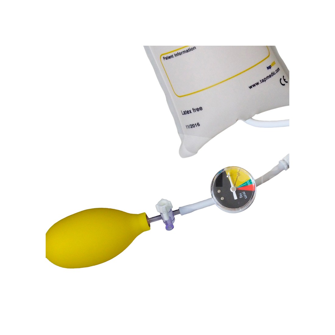 Premisacca di alta qualità mono paziente, realizzato in nylon di colore blu, dotato di doppia saldatura nei bordi per una garanzia di lunga durata. Il dispositivo è dotato di uncino posto sulla parte superiore per garantire un corretto e sicuro posizionamento su piantana. Il premisacca è completo di manometro di precisione, pompetta manuale e rubinetto.