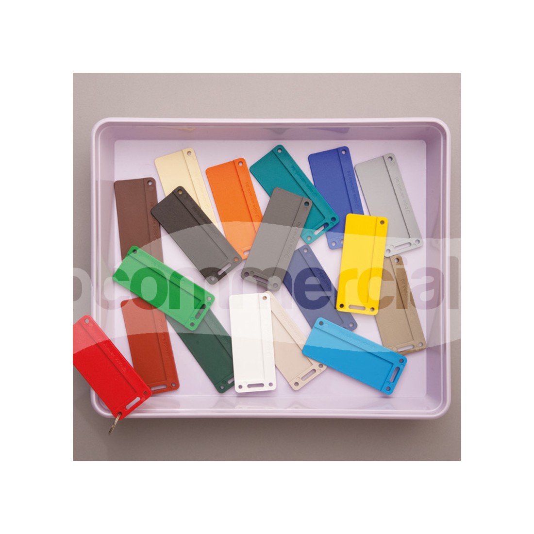La targhetta è dotata di spessore aumentato che permette numerosi cicli di lavaggio e sterilizzazione ed evita possibili deformazioni del prodotto. Le targhette sono dotate di tre fori posti agli angolo e di una ansa laterale per l'applicazione di anelle e/o laccetti di fissaggio.