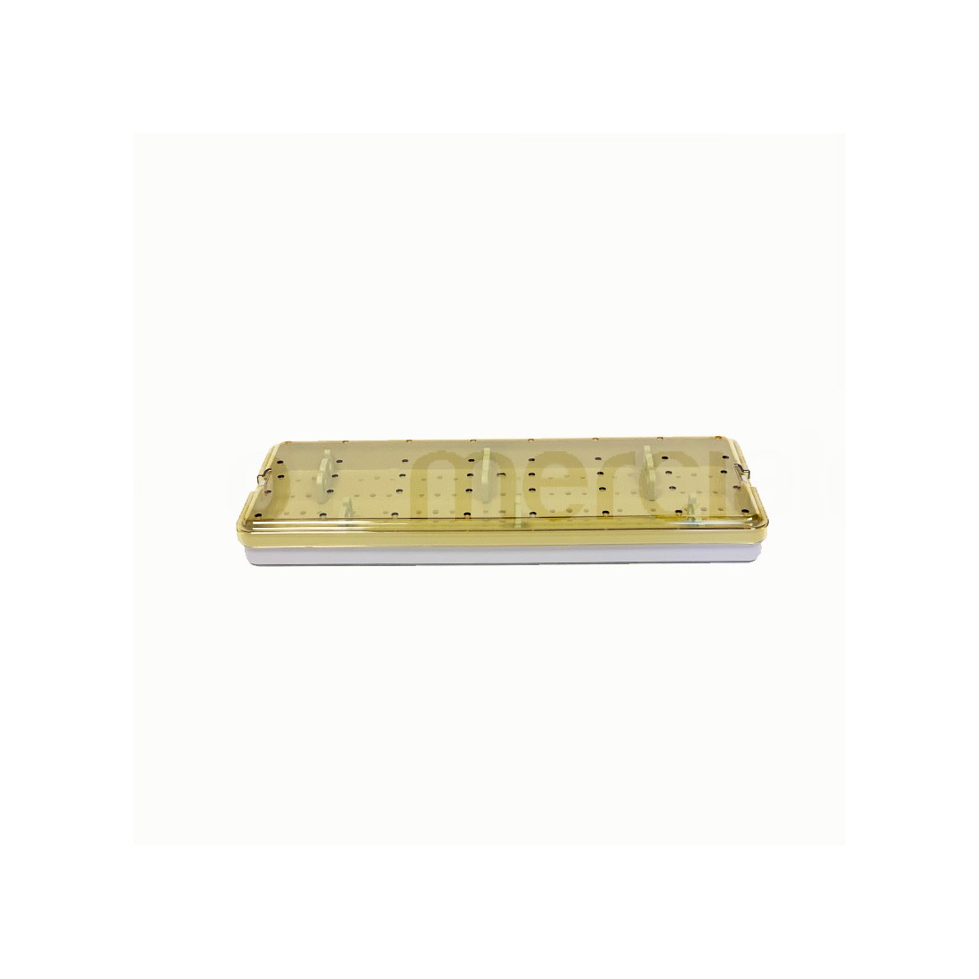Vassoi pluriuso realizzati in materiale plastico, dotati di base, coperchio e supporti interni in silicone per la corretta organizzazione di ottiche endoscopiche durante il processo di sterilizzazione, stoccaggio e movimentazione.